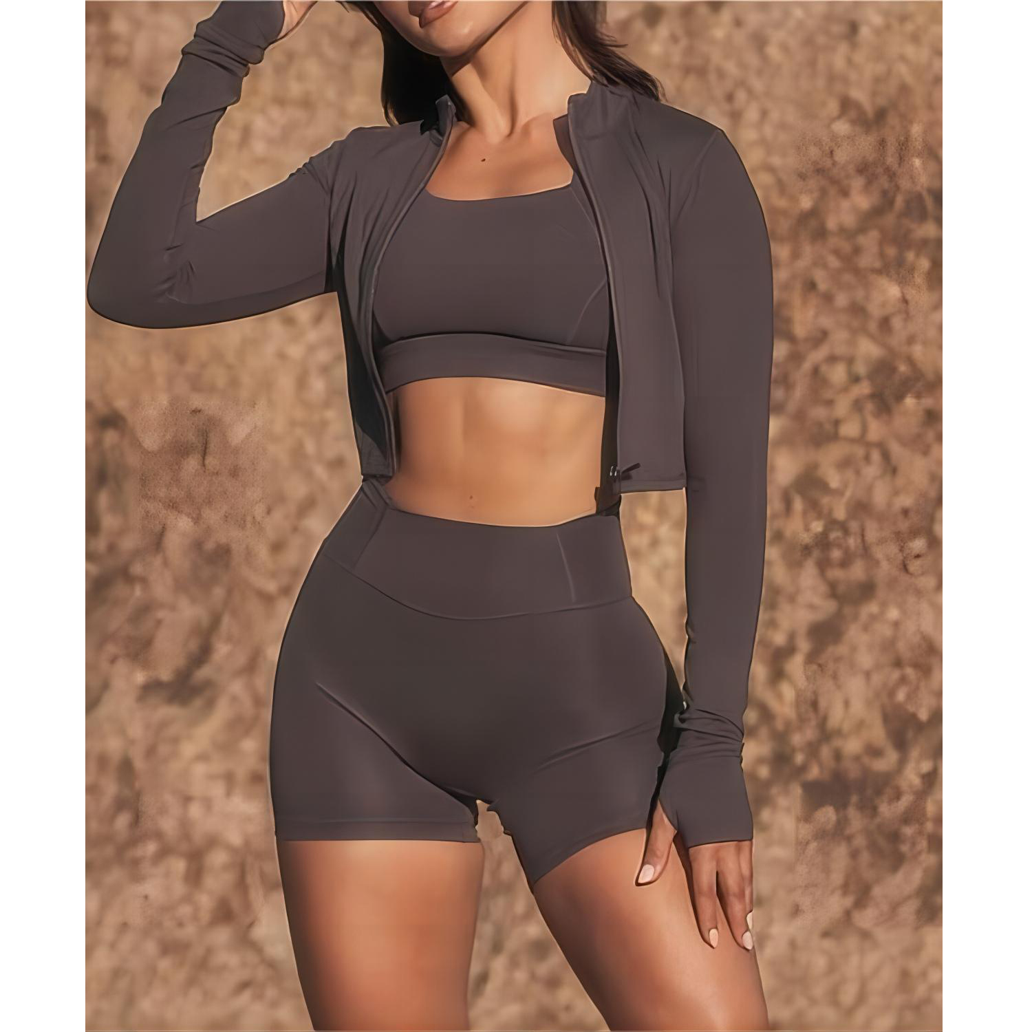 ชุดออกกำลังกายเล่นโยคะสำหรับผู้หญิงชุดออกกำลังกายกางเกงขาสั้นบรา2ชิ้นชุดเล่นฟิตเนสคอวีออกแบบได้ตามต้องการสำหรับฤดูร้อน F240198